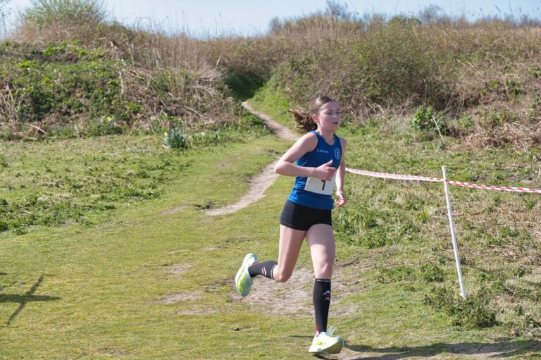 The closest race of the day – and the difference between a Jersey win and honours even – was the U15/U17G race, where Jersey prevailed by a single point. Whilst the Jersey team was low in numbers, it was high in quality – with a combination of Phoebe Assiter, Florence Williams and Lia Romero digging deep to overcome a talented Guernsey team spearheaded by Grace King, Theodora Murray and Indi Warren.