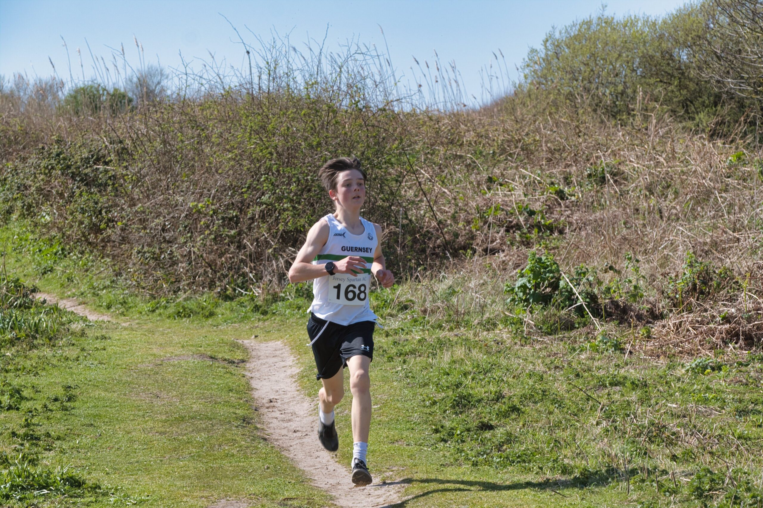 It was a more comfortable win for Jersey in the U15/U17Bs, who fielded a strong team including winner Ewan Pilley and second place Danny Wood, together with Myles Christopher, Leo Gage and Zane Simpson – the latter two running with confidence after their recent English Schools XC Championships experience.