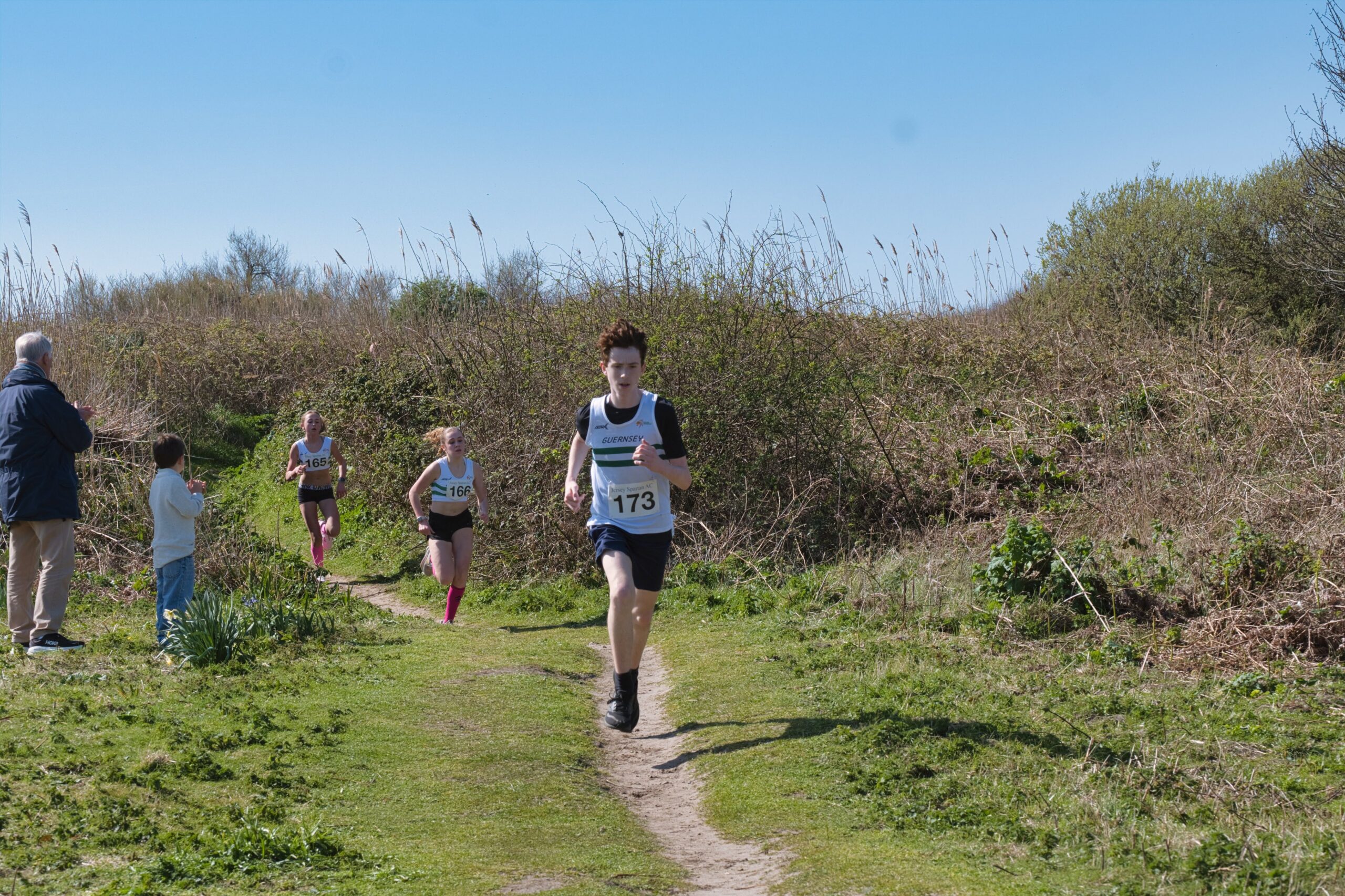 Saturday saw the return of Inter-Insular Cross-Country racing for the first time in a number of years, with a team of JSAC junior athletes taking on their counterparts from Guernsey Athletics in glorious sunshine at Kempt Tower, St Ouen.